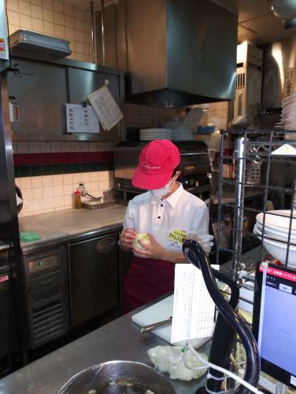 仕込みの玉ねぎを剥いたり食器を片づけたりと活躍しています。
