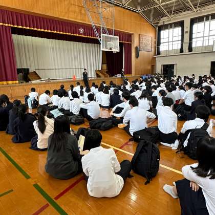 本日5限は体育館で最終の集会を行い、注意事項の指示やグループ別活動についての確認が行われました。
