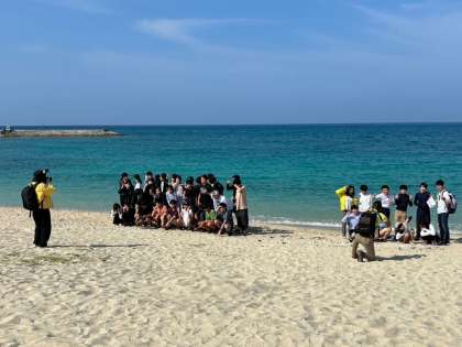 クラス写真を撮影し、バナナボートへ向かいます。