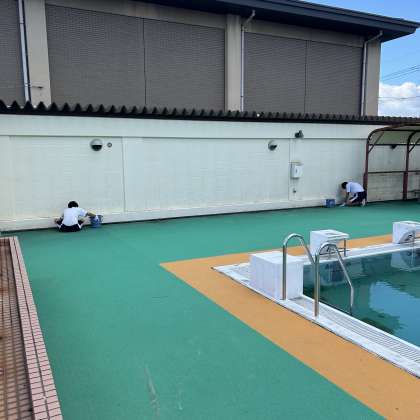 本日はプールサイドの壁面の蔦を撤去するなど美化活動に勤しんでくれています。