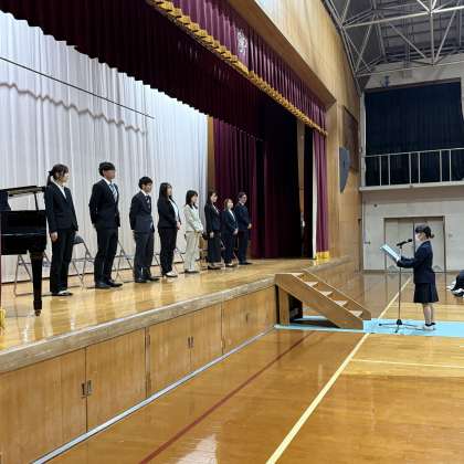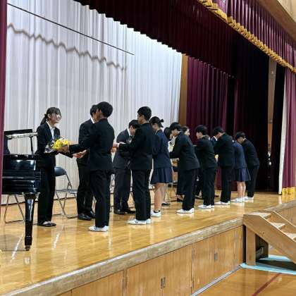 お別れの言葉:代表2年生 YSさん と 花束贈呈