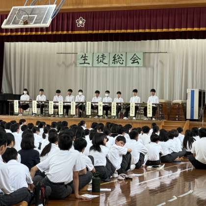 生徒会本部のみなさんを中心に、自分たちの力で、会を進行してくれており、とても頼もしく感じる生徒総会でした。生徒会を中心に、桃山中学校がよりよくなるよう、これからも取り組んでいきましょう!