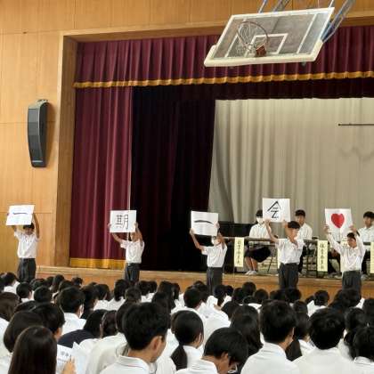 1年生は「一期一会」、2年生は「Grow up!〜誰もが志を持つ」、3年生は「Peace of 大きな輪〜Enjoy last year〜」です。それぞれの目標に込められた想いを実現していけるように、すてきな学年にしていきましょう!