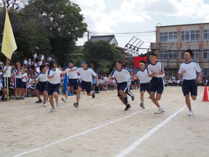学年種目は、1年台風の目、2年綱引き、3年全員リレーです。各クラス、作戦をたてて、声を掛け合い頑張っていました!