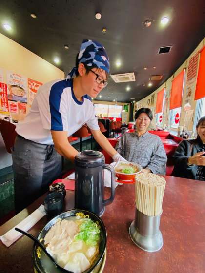 緊張の面持ちでラーメンを運んできてくれた2人。