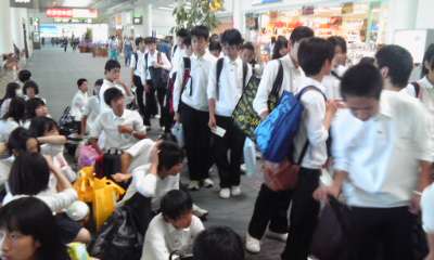 16:00前に伊丹到着。駐車場で解団式を行い、小学校区別のバスに分乗して18:00頃に校区内到着、解散の予定です。
