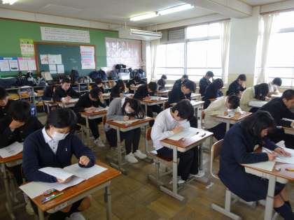 今日は「全国学力学習状況調査」の一斉実施日です。3年生たちは、現在の自分の力を試すべくしっかりと問題に向き合っています。