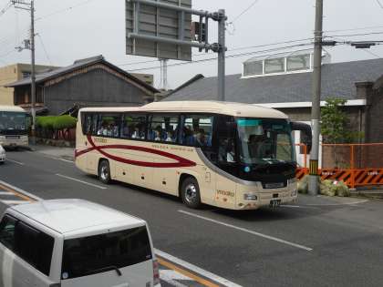 3年生は、玄関に展示中の1組の貼り絵に見送られ沖縄への修学旅行に向けて出発しました。まずはバスで伊丹空港へ向かいます。