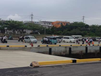 平和講演を終えて生徒たちはそれぞれお世話になるお家の人の迎えをうけてファームスティに向かいました。いろいろな体験をして沖縄、伊江島での思い出をつくってほしいと思います。