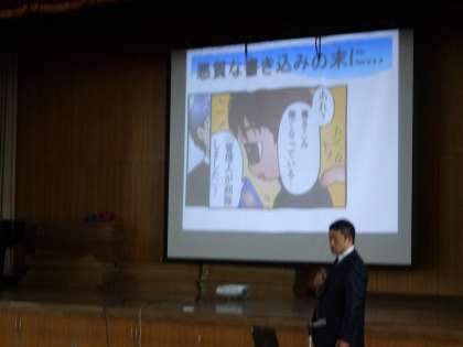 後先のことをしっかりと考えて行動することの大切さや思わぬ事件の加害者・被害者にならないように気をつけることの大切さを学びました。いたずらや腹がたったから…では済まないという事例の紹介もありました。皆、真剣な表情で聞きいっていました。