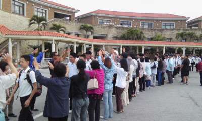 この後、バスで那覇へ戻り、国際通り周辺をグループ活動で散策します。