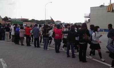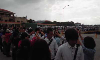 離村式を終えて、フェリーに乗船。今頃は対岸の本部港に向かっている頃です。