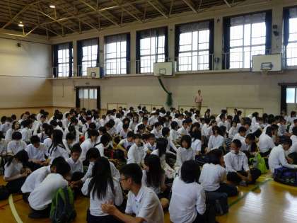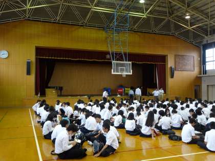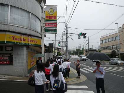 2年生は高校訪問に向けて出発しました。8時集合完了、8時15分学校発という予定よりは10分ほど遅れての行動になりました。200名を越える集団が行動する際には一人一人が時間を守ることが大切です。