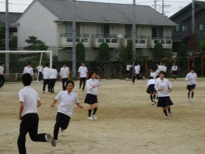3年生体育委員会はドッジボールではなく、「鬼ごっこ」を企画しました。「中3が200人以上で鬼ごっこ?」と少し不安に思いながら昼休みのグランドを見に行くと、グランドいっぱいに3年生が楽しそうに走り回っていました。