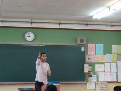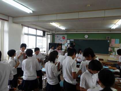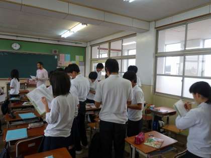 3年生の英語の授業では、ALTのアンガス先生を迎えて学習をしていました。ウォーミングアップのインタビューでもしっかりと応えられていました。