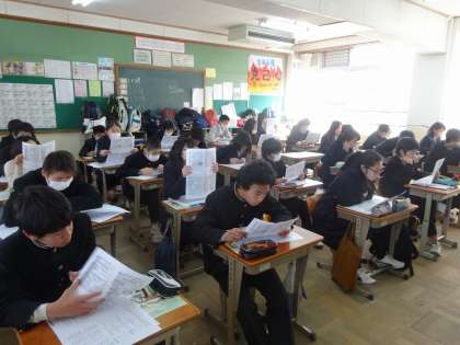 2年生は進路学活を行いました。公立、私立の違いや、公立の前期、中期、後期の選抜、私立の推薦、専願、併願、一般受験の違いなどたくさんの情報がありました。自分の進路希望をしっかりと描くために理解を深めてほしいと思います。
