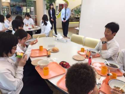 昼食タイムには高等学校の食堂を利用させてもらえる班もあります。