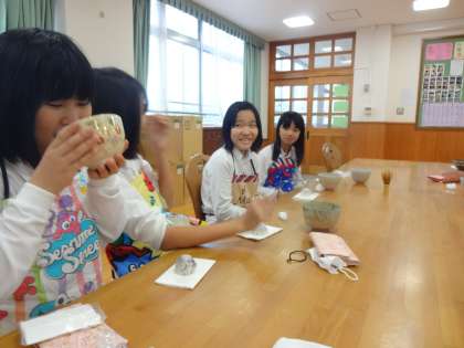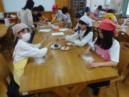 13日(土)の土曜参観で、茶道部は保護者の方と一緒に、「いちご大福」づくりにチャレンジしました。電子レンジを使うと簡単なのですが、粉の分量を量るところから作って、時間いっぱいかかりました。最後は、お抹茶をたてて一緒にいただきました。