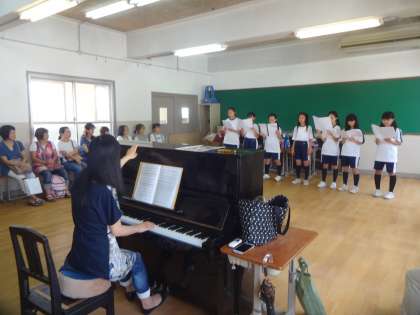 ちなみに合唱部の練習風景もパチリ!芝生での合唱もさわやかでしたが,室内だと,歌声が響いてキレイ!レッスンで歌声に磨きがかかり,参観の方からも拍手をいただいていました。