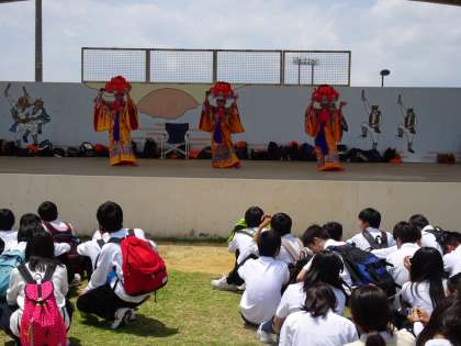 美しい海の見える与那城総合運動公園で入村式を行い,まずは格調高い琉球舞踊を見せていただきました。