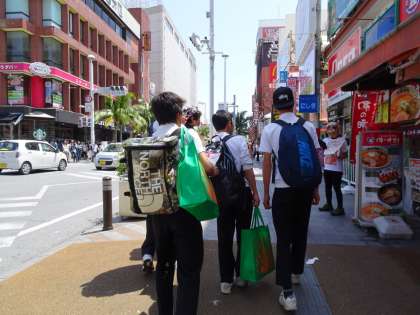 でも,みんな元気に楽しんで国際通りを散策しています。