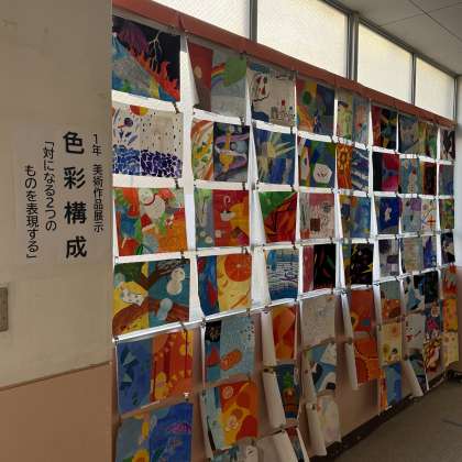 南校舎1階廊下には1・2年生の絵画作品が、校長室前には1年生の紙粘土による作品がそれぞれ展示されています。懇談等で学校にお越しの際に是非ともご観覧くださいませ。