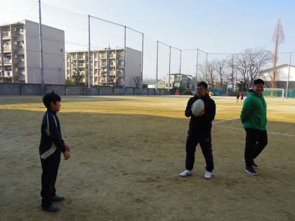 ラグビー部の練習に、大学やトップリーグで活躍する先輩たちが大勢来てくれました。日本代表として活躍している先輩もおり、部員達は目を輝かせていました。