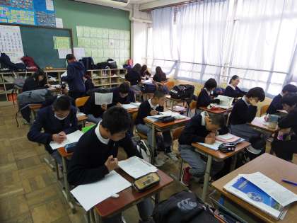 3年生が頑張っている今日、テスト前学習会3日目が開かれ、1・2年生でも力を伸ばしていこうと懸命に努力する姿が見られました。