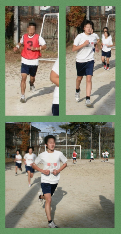 今,体育の時間で持久走を行っています。冬の寒さに負けない体力と精神力を鍛えています。時には,5kmを走ることもあります。また,マラソン大会が,12月13日(月)に山城総合運動公園で行われます。