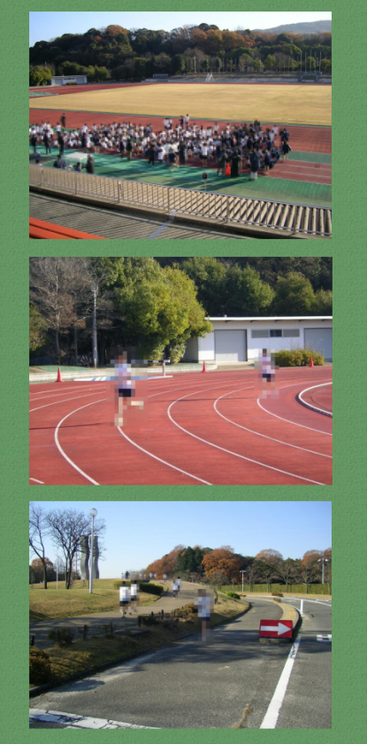 1年生にとっては初めてとなる山城総合運動公園でのマラソン大会。スタートは陸上競技場です。競技場トラックを2周して,競技場を出て,公園内を走ります。平たんな道ばかりではなくアップダウンもあるコースとなっています。回りを眺める余裕はないかもしれませんが,見晴らしの良い景色もあるコースでのマラソン大会です。尚,画像は昨年度ものです。本番は12月13日(月)です。