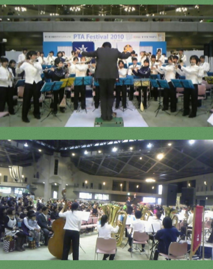 12月11日(土)第13回京都市PTAフェスティバルのオープニングに伏見中学校吹奏楽部が向島東中学校と合同で参加しました。会場には京都市じゅうの学校の展示作品や出店が立ち並びとても賑やかで,またクリスマス仕様でサンタさんも沢山いました。本番は座席に座りきれないほど沢山の方々が集まって演奏を聞いてくださいました。演奏後にはアンコールもしていただき歌と演奏のMIX曲「風になりたい」を披露させていただきました。