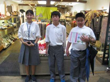 1年生は「総合的な学習の時間」に「豆記者体験」に取り組んでいます。7月4日(水)グループごとに各事業所を訪問し、1年生の豆記者が取材活動を行いました。写真では、地域の商店街を訪問し、担当生徒が事前に準備した質問を行い、記録係や写真係の生徒と協力しながら取材活動を行っていました。来週からは、新聞づくりに取り組む予定です。