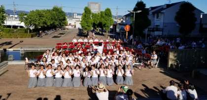 伏見中学校吹奏楽部が経験させていただいている「出会い」。秋の薫りがほんのわずか風にのって運ばれてきた8月26日(日),伏見中学校吹奏楽部は校区内にあるグランデュール鴨川の夏祭りにお邪魔して演奏させていただきました。
