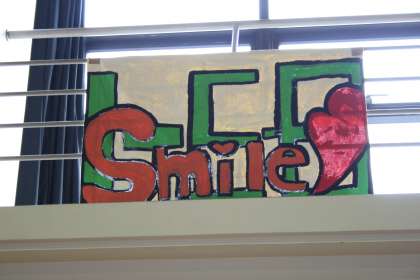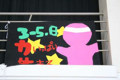 体育館の壁面には、各クラスの学級旗が飾られました。