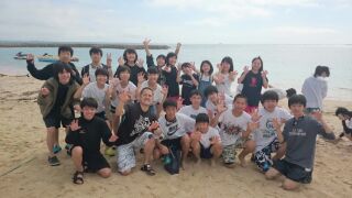 昨日は,曇りから雨という天候でしたが,本日は晴れでマリン体験にもってこいの天候となりました。9:00に体験場所であるサンサンビーチに民泊先から集合し,それぞれバナナボート・ビーチフラッグ・ビーチバレー・グラスボートなど体験します。