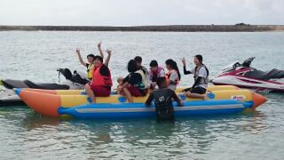 バナナボートやビーチバレーなどクラス毎に順番に体験をしていきます。