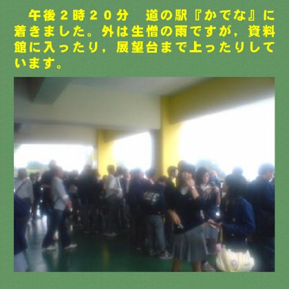午後2時20分 道の駅『かでな』に着きました。外は生憎の雨ですが,資料館に入ったり,展望台まで上ったりしています。