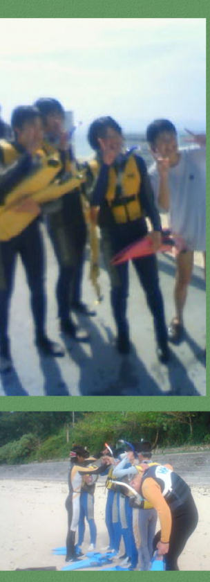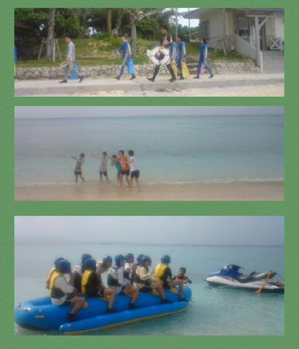 午前10時50分 マリン体験,晴れています。シュノーケリングやドラゴンボート,クルージング,水中観察など楽しんでいます。また,島内観光もしています