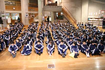 昼食を終え,退所式。雨もふってきたので,オリエンテーションホールでの退所式となりました。迎えの京都バスさんもホールの前まできてくれました。バスに乗り込んで,出発を待つばかりです。ご案内の通り,校区解散は午後3時30分頃を予定しております。1泊2日の山の家での宿泊学習も無事終わりとなりそうです。