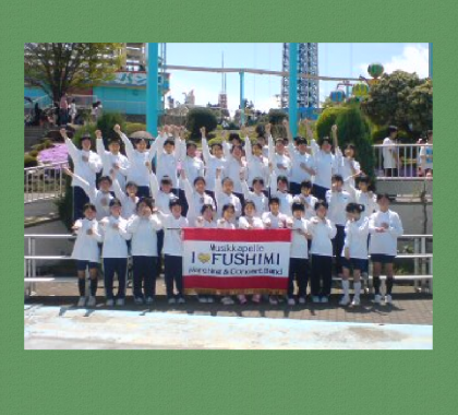 5月8日(日)は万博記念公園で催された『ブラスエキスポ』に参加。午前は1年生がマーチング教室 2,3年生がチアリーディング教室に参加。箕面自由学園ゴールデンベアーズによる指導を2時間受け午後からのお祭り広場での本番に備えました。次に参加校が万博公園の東西に分かれ各地点よりパレードを開始。伏見は4番目にスタートしました。その後 2,3年生はゴールデンベアーズの方々とチアの演技を披露。「あ〜楽しかった!!!」