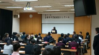 11月9日(土)京都市総合教育センターで「京都市中学校総合文化祭(朗読コンクールの部)」が開催され、現代文の部に2名、古典の部に1名の代表生徒が参加しました。3名はいずれも放送部に所属する生徒であり、日頃の練習の成果を存分に発揮しました。