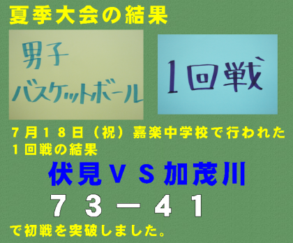 夏季大会の結果 男子バスケット部