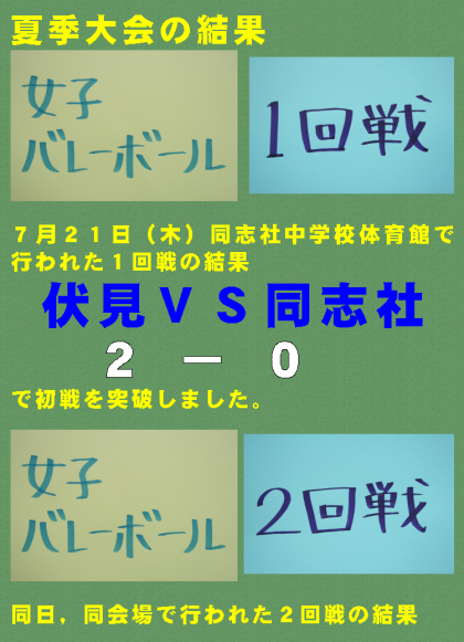 7月21日(木)同志社中学校体育館で行われた1回戦の結果