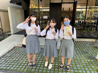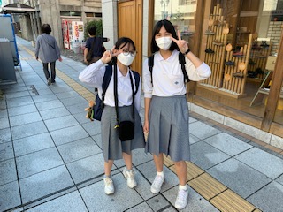 松本市内で班別研修中です。松本駅のお土産もの店にて、思い思いにお土産選びを楽しんでいます。街中は、綺麗な街並みに美味しそうなソフトクリームや和菓子のお店がたくさん。何を食べようか、何を買おうか悩んでいます。グループどうしが出会うと「何を買ったん?」とお互いに調査し合い情報交換。皆、順調に過ごしています。