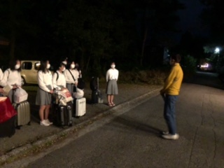 ペンションごとにオーナーさんにご挨拶して、それぞれのペンションにわかれました。19時から夕食,その後花火を行う予定です。今のところ,3年生全員が元気で過ごしているとのことです。今日は朝も早かったので,ゆっくり休んでほしいと思います。なお,本日の修学旅行だよりはこれで最終とさせていただきます。