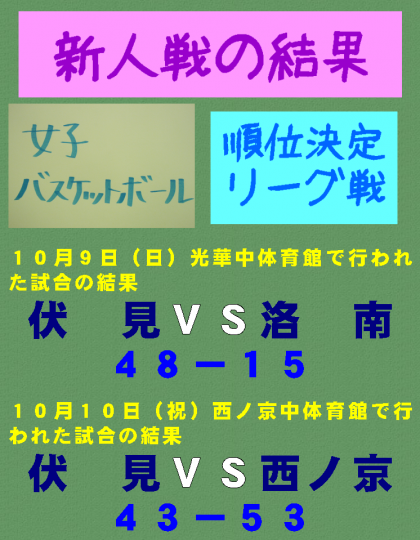 新人戦の結果 女子バスケットボール部