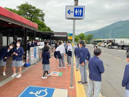 南条SAの様子です。楽しそうな雰囲気で友達と話をしています。さあ,目的地の金沢まであと2時間程度になります。