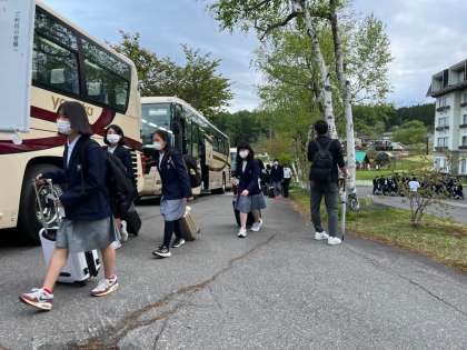 予定より少し遅れて,18時過ぎにホテルに到着しました。夕食を取ってから入浴・学年レクリエーションとなっています。今日は朝も早かったので,明日の体験活動に備えてゆっくり休んでほしいと思います。