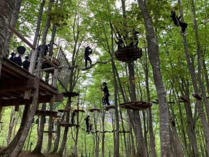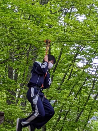 午後からの体験活動の様子です。ツリーアドベンチャー,高くてハラハラしますね。
