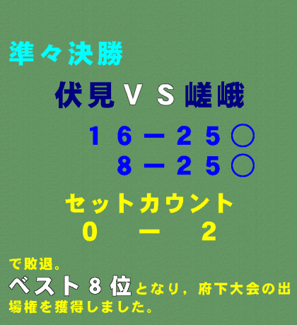 で,敗退。ベスト8位となり,府下大会への出場権を獲得しました。